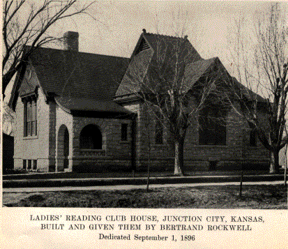 Before he had reached his majority he had left school and entered the army, and came out with the rank of captain. Two weeks after being mustered out, in September, 1865, Captain Rockwell reached Leavenworth, Kansas. From there he was carried by one of the Kansas stage line stages to various towns and cities, visiting Lawrence, Topeka, Manhattan, Junction City, and Council Grove. His object was to find a suitable location for business. He finally cast his lot in with beautiful Junction City, then a town of 300 or 400 people. His first task was to erect a frame building 20 by 50 feet. Ten feet at the rear was partitioned off for a sleeping room. He was then unmarried and for several years he lived and worked in one building. The rest of the space he filled up with a stock of groceries and men's furnishing goods. This frame building gave way to a larger and better structure, and B. Rockwell & Company attained its position among the foremost merchandise firms over all that section of Kansas. For twenty-five years Captain Rockwell put in sixteen hours a day at his business and his success grew in proportion to his energy and enterprise. His father was also associated in business with him for a time, and subsequently George A. Rockwell, a brother of Captain Rockwell, became a partner. In 1892 the business was incorporated as the B. Rockwell Merchandise & Grain Company, with Capt. Bertrand Rockwell as president, George Rockwell, his father, as first vice president, and George A. Rockwell was second vice president. Captain Rockwell retired from the active business in February, 1905, and was succeeded by George A. Rockwell as president. This is one of the oldest commercial enterprises of the state, with a record of more than half a century of existence. Measured by the annual volume of its trade transactions, the business was hardly second to any similar establishment in the larger cities of Kansas.