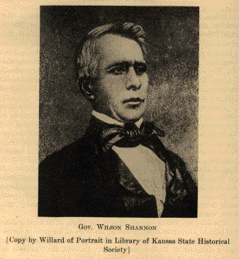 The sixth son was Wilson. His brothers John and Thomas sent him in his nineteenth year to the University of Ohio, at Athens. He remained there nearly two years. He was then sent to Lexington, Kentucky, to enter the Transylvania University. While there he studied law in the office of his brothers George and James. In 1826 he was admitted to practice, at St. Clairesville, Ohio. He rose rapidly in his profession. When his practice was sufficient to support himself and a wife, he was married to a daughter of Mr. E. Ellis, at that time Clerk of the Circuit Court. Much of his political advancement was the result of this marriage. His brothers-in-law were all influential men in Ohio politics. Among them were Honorable William Kennon; Honorable George W. Manypenny, Commissioner of Indian Affairs when Kansas was organized as a Territory, Honorable Hugh J. Jewett; and Honorable Isaac E. Newton. The influence of these men were exerted in his behalf. In 1832 he was the candidate of the Democratic party of his district to Congress, and was defeated by General James M. Bell, by only thirty-seven votes. In 1833 he was elected County Attorney for his county. He was re-elected in 1835. He was elected Governor of Ohio as a Democrat in 1838. He was the party candidate for the same office in 1840, but was defeated by Thomas Corwin. He favored the nomination of General Lewis Cass for the Presidency in 1844. That year he was appointed Minister to Mexico. He returned home on the breaking-out of the Mexican War. Upon the discovery of Gold in California, Governor Shannon went there, in 1849. He remained two years, but accomplished little. returning to Ohio in 1851. In 1852 he was elected to Congress. He approved the Kansas-Nebraska Bill and the Repeal of the Missouri Compromise. His approval of these measures made him unpopular in his district and he was not a candidate for re-election.