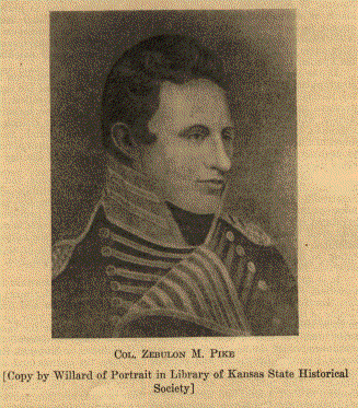 The next exploration of the country which was to become Kansas was in 1806. In 1805 Lieutenant Zebulon M. Pike was sent on a voyage of exploration and discovery up the Mississippi from St. Louis by General James Wilkinson. From that voyage he returned on the 30th of April, 1806. General Wilkinson was Military Commandant of the Territory of Louisiana, and it was in his military capacity that he directed Lieutenant Pike to undertake the voyage up the Mississippi. Upon his return from the river expedition General Wilkinson, who was also Governor of the Territory of Louisiana, ordered Lieutenant Pike to explore Louisiana by the way of the Great Plains. That was also a military exploration. It was governmental only incidentally, and different from that of Lewis and Clark, which had been ordered by the President of the United States. General Wilkinson was implicated in the schemes of Aaron Burr, and he had been in the intrigues of the Spanish authorities against the United States. There is reason to believe that he hoped to forward his treasonable designs through the expeditions of Lieutenant Pike. Mr. Coues, the editor of the Journals of these explorations, was convinced that Pike was not altogether ignorant of the plans of General Wilkinson. But the evidence upon which he based that conclusion is not sufficient. Something more will have to be adduced before it can be certainly said that Lieutenant Pike had guilty knowledge of the machinations of his superior. Pike was a good soldier, and he met a glorious death in the service of his country.