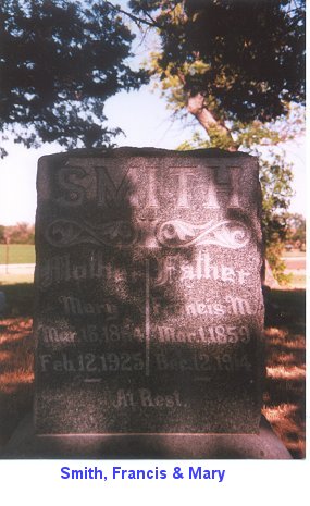 | hillsdale4.jpg | Smith, Francis M. & Mary, Hillsdale Cemetery, Tombstone photo | 37k | 08/18/2001 | Louise Adams |
