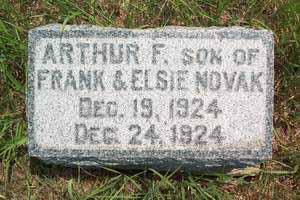 | Novak, Arthur F. | Dec. 19, 1924 | Dec. 24, 1924 | 5 days | son of Frank & Elsie Novak | picture | ||