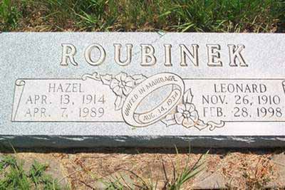 Roubinek, Hazel Apr. 13, 1914 Apr. 7, 1989 74 United in Marriage Aug. 14, 1934   Leonard picture