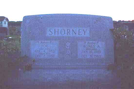 Shorney, Joe Apr. 4, 1883 Jan. 2, 1952 68 (Father) Born in Cuba, KS, Died in Narka, KS   Agnes A. picture