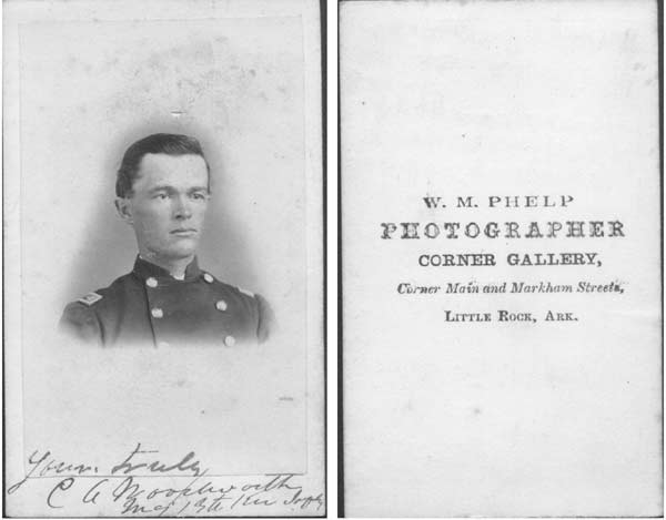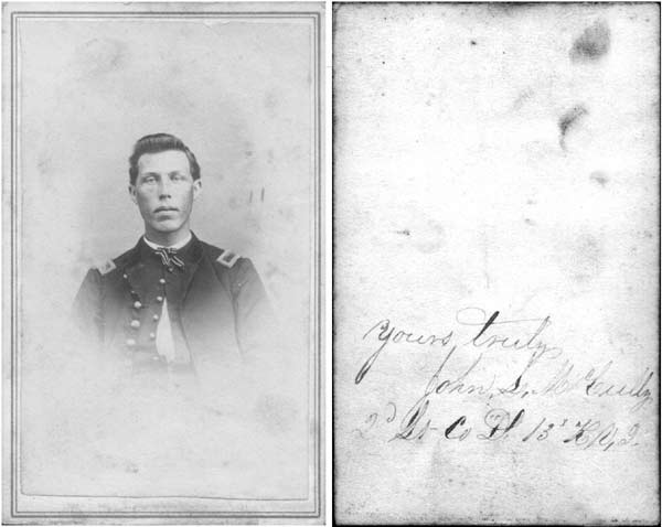 "All but one picture are identified by signatures and regiments. They were taken in Little Rock Arkansas at a photography studio while the 13th was on garrison duty there." Submitted by Karen Lavrischeff