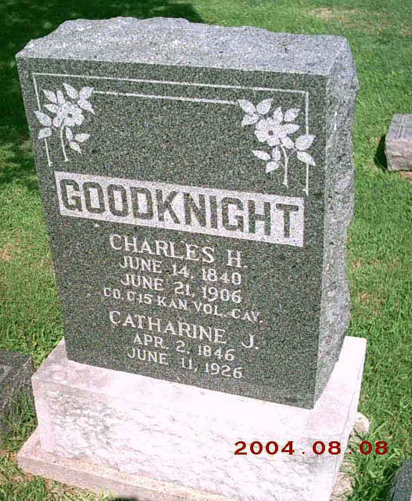 Charles Henry Goodknight was born in Bartholomew county, Indiana, moved from there to Iowa, and at the breaking out of the war came to Kansas and enlisted in Co. C, 15th Kansas Cavalry, serving until the close of the war. Mr. Goodknight lived in different places in Kansas but most of the time since the war has lived in Neodesha. He leaves a wife and nine children.