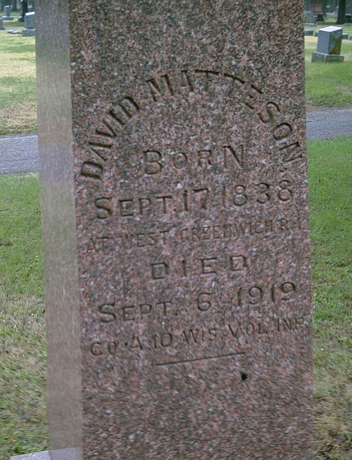 Mr. Matteson served his country during the Civil War, and for three years, one month and nineteen days he was a member of the Wisconsin Vol. Inf.