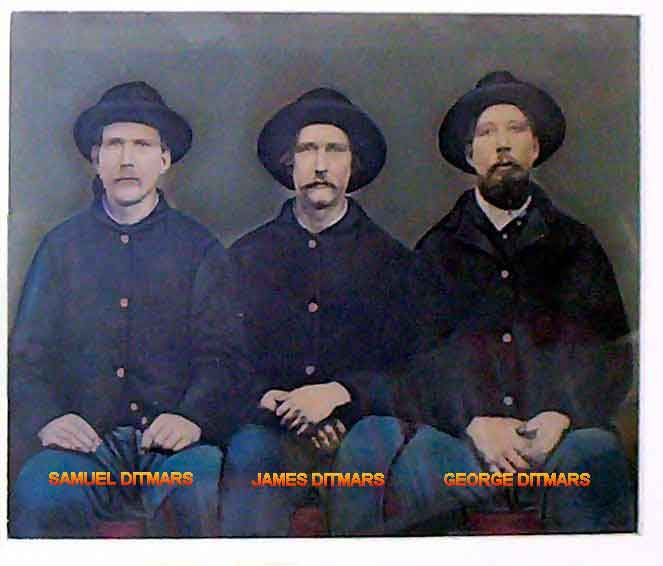 Mr. Ditmars established his wife and family safely in Iola and enlisted in Company D, of the Ninth Kansas, which made such a name for itself on both sides of the line for valiant service. In the three years of more than active service Mr. Ditmars received only one injury, a rupture from the pommel of a saddle, and from which he never fully recovered.