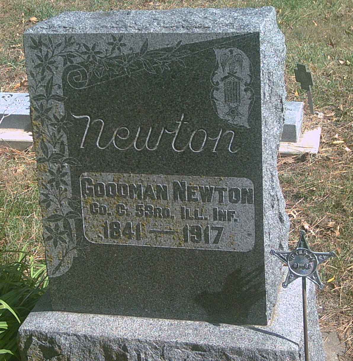 Goodman Newton, well known in and about Burlingame, died at the home of his daughter, Mrs. Martin Myers, near Wilmington, on Tuesday, Jan. 30, after a short illness. Mr. Newton was a stone mason and plasterer by trade, and had lived in this vicinity for the last twenty-five years. Funeral services were held at the daughter’s home at ten o’clock yesterday morning and burial was made in Burlingame cemetery. Goodman Newton, son of Knute and Bertha Newton, was born in Norway on Nov. 27, 1841, aged at the time of his death seventy-five years. When a boy of but eleven years he came to America, locating in Illinois. He enlisted in the 53rd Ill. Inf. and served until the close of the war. His marriage to Susan Farley occurred at Ottawa, Ill., April 9, 1867. Soon afterward they moved to Kansas and homesteaded a farm in Lincoln county. In 1894 they came to Lyon county, since which time he lived in this locality. Of eight children born seven survive, all being present for the funeral service: Emerson of Colorado, Thomas, Edward, Robert and Mrs. Martin Myers of this locality, Fred of Lyon county and Mrs. O. M. Olson of Lincoln Center. The deceased was a member of E.P. Sheldon Post G. A. R. and was buried with honors due a soldier.