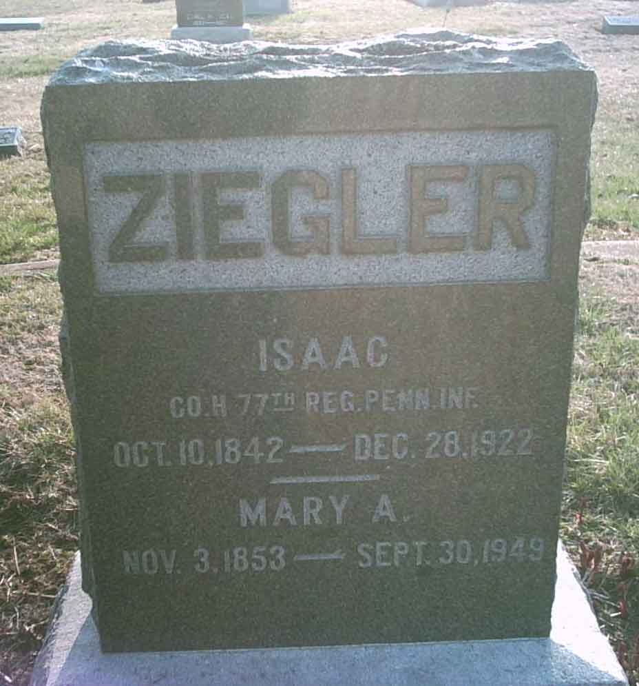 ISAAC ZIEGLER                        GRAVESTONE PHOTO