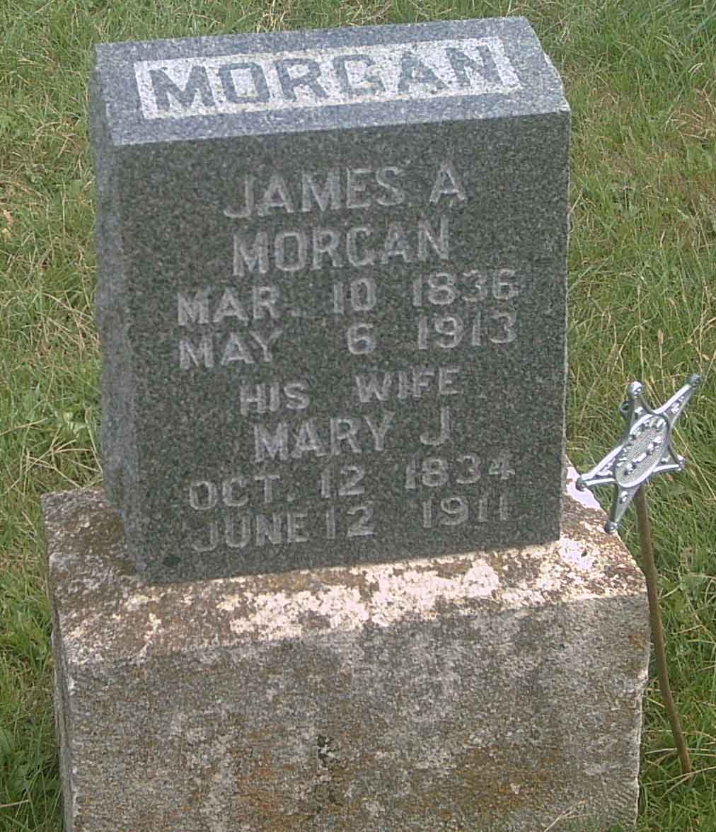 James A. Morgan was born in Roseville, Ohio, March 10, 1836, and died in Burlingame, Kansas May 6, 1913, aged 77 years, 1 month and 26 days. He was married in 1857 to Mary Jane Tipton, who for more than half a century was a faithful and loving companion, preceding him to the other side about two years. Her only regret in departing was that she could no longer minister to him in his sad affliction. In 1872 Mr. Morgan moved with his family to Topeka where he remained four years, then came to Burlingame where he has since resided. Eight children were born to them, six of whom survive—Geo. C. Morgan, Flagstaff, Ariz.; Frank and Samuel Morgan, of Oklahoma; E. E. Morgan, of Burlingame, Kas.; Mrs. Olla Welsh, Reading, Kas.; and Mrs. Ella Smith, of Burlingame, with whom he made him home for some time previous to his decease. Two sons, Ross E. and William, previously deceased. Mr. Morgan served as soldier in the Civil War in the 16th Ohio Regiment. He had been a great sufferer for a number of years. During a greater portion of the time of his illness he was blind. He bore the affliction with the fortitude, only begotten by faith in an all wise and beneficent Providence who orders our way and directs our paths. His yearning desire for many months has been to depart and be at rest with the loved ones gone before. His suffering was relieved to the limit of human power by the tender ministry of his daughters, all that duty and devotion prompted was cheerfully rendered. An unspeakable solace to an afflicted old age is the tender care of those loved best. Mr. Morgan was not a member of any church, but in conversation with family and friends he expressed a firm faith in the Savior of man—and he faced the future without fear. To him death was not a dreaded monster, but rather a ministrant mercy of a kind Providence that gave him deliverance from this body of pain and opened the may into “the land of far stretching distance,” where he should “behold the King in his beauty.” Funeral services were held in the Methodist Episcopal church Thursday, May 8th, 2:30 p. m., conducted by the pastor, Rev. I. B. Pulliam. Interment in the Burlingame cemetery.