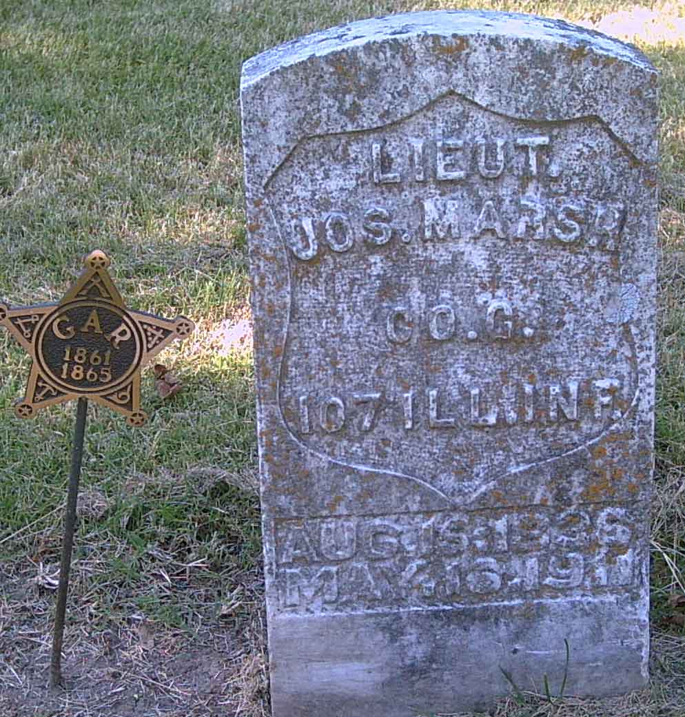 Uncle Joe Marsh as he was commonly called by all who knew him, was 75 years old and was born August 15, 1836, in Pickaway county, O. He came to Ottawa in 1868 and has conducted a hotel here for over 30 years. The hotel known as the Marsh House has been conducted by him for 22 years in the present location. He was a veteran of the Civil War; having served almost four years in the army. He was a first lieutenant of the 107th Illinois infantry, Company G. He was commander of the local G. A. R. Post for one term.