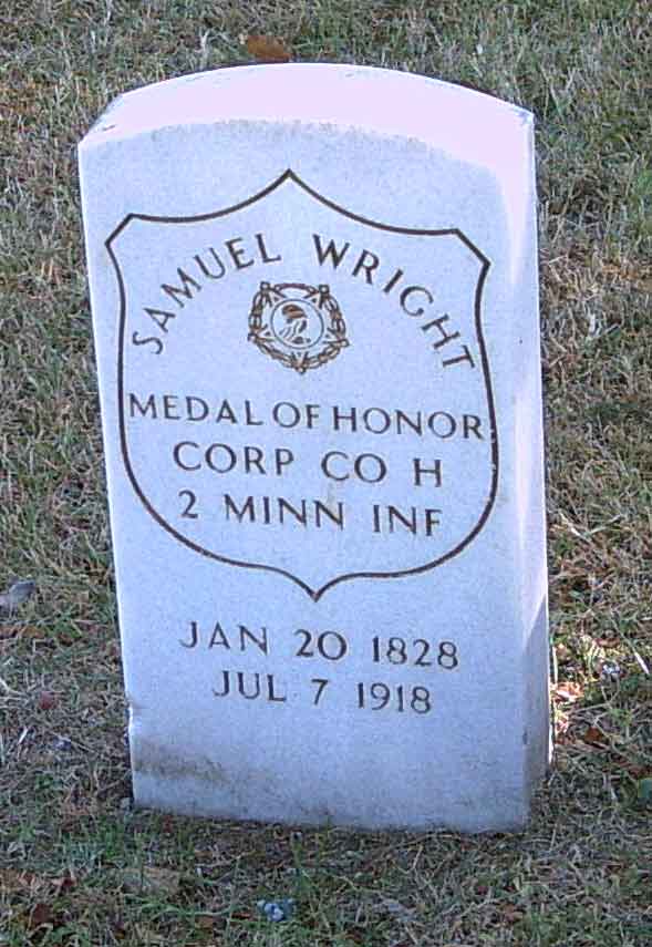 WRIGHT---Funeral services for Samuel Wright, age 90, who died Sunday while on a visit to his son, O. F. Wright, of Tribune, Kas., were held this afternoon at 3:30 at the parlors of the City Undertaking Company.  Rev. J. P. Gibney of Sunnydale, and Rev. J. C. Bellel of this city, were in charge of the services.  Interment was in the Maple Grove cemetery.  Mr. Wright was an old soldier and a member of Garfield Post.  He served three and a half years in the Civil War with Company H, 2nd Minnesota Infantry.  He made his home with his daughter, Mrs. Sydney E. Baird, of Wichita.  Besides Mrs. Baird and his son, he is survived by Mrs. L. P. Kohl, of Furley, another daughter.