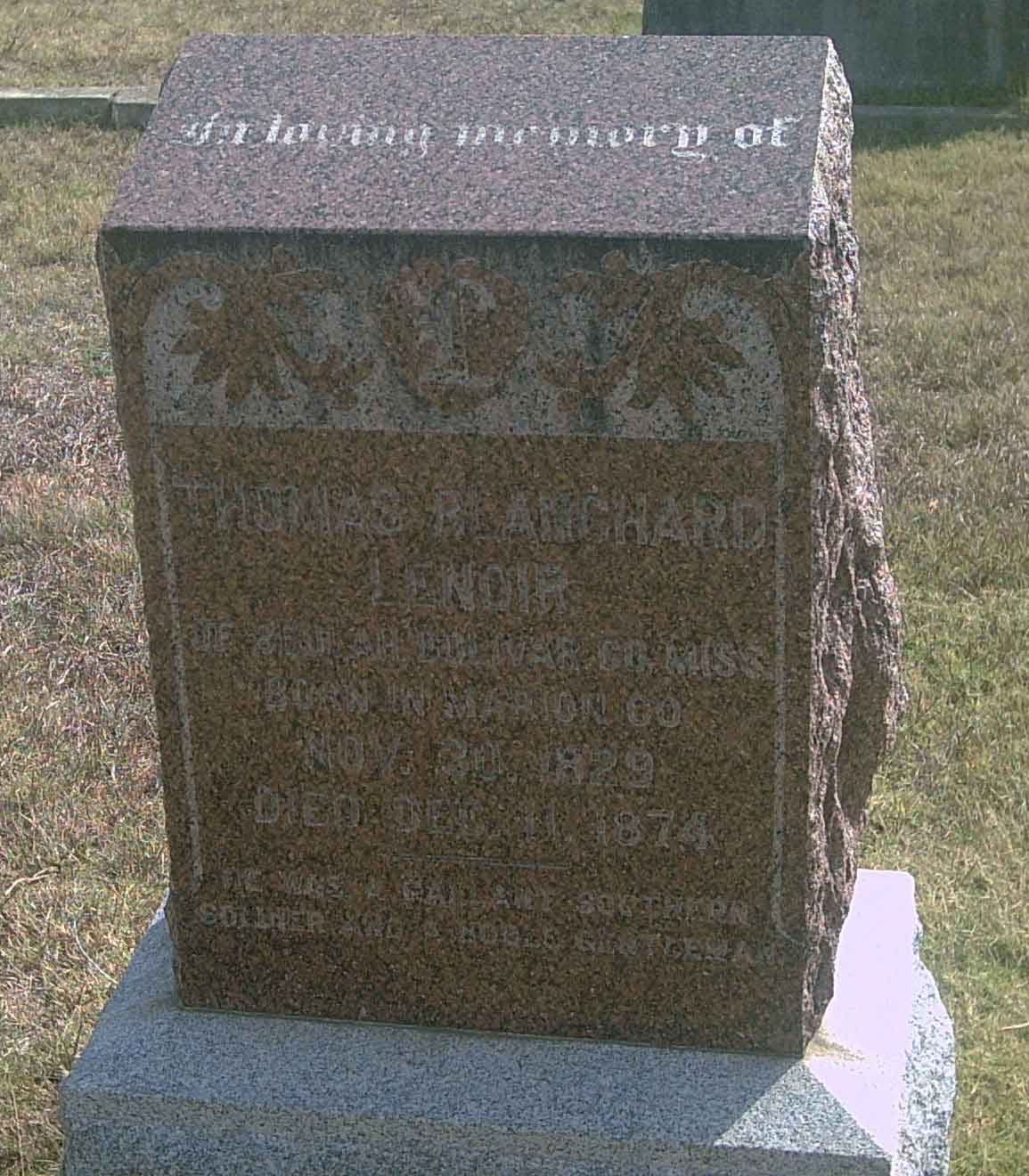 THOMAS BLANCHARD LENOIR         GRAVESTONE PHOTO