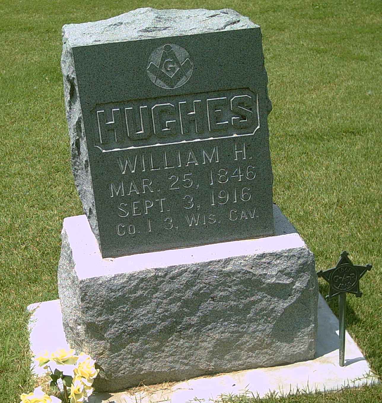 William H. Hughes was born in Blossburgh, Penn., March 25, 1846. He removed with his parents in 1856 to Dodgeville, Wisconsin. On January 27, 1864 he enlisted in the Union army and was honorably discharged about a year later at the end of the war.